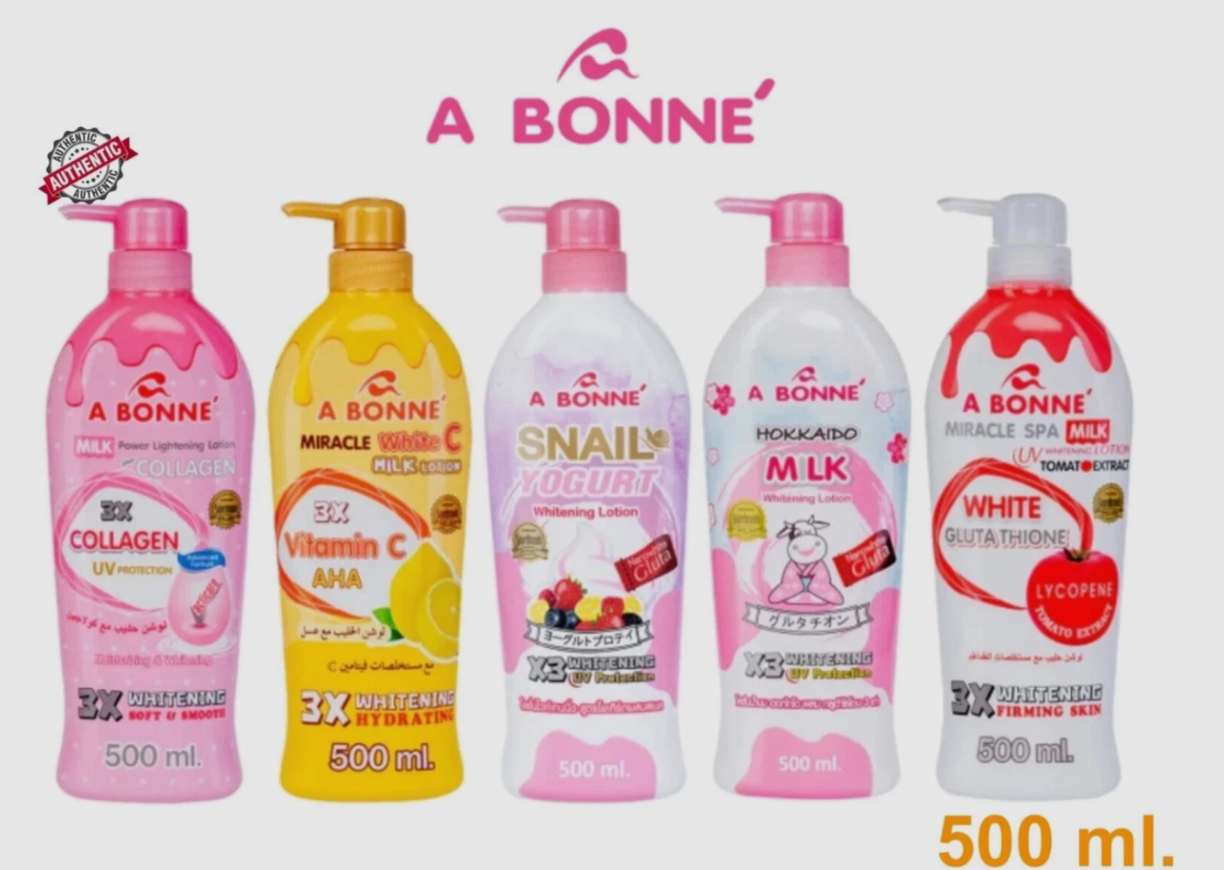 A Bonne (also called Abonne) is a trusted Thai skincare brand, well-known for its brightening, nourishing, and moisturizing formulas. Each lotion is enriched with natural extracts, milk proteins, and active whitening agents that care for your skin gently yet effectively.