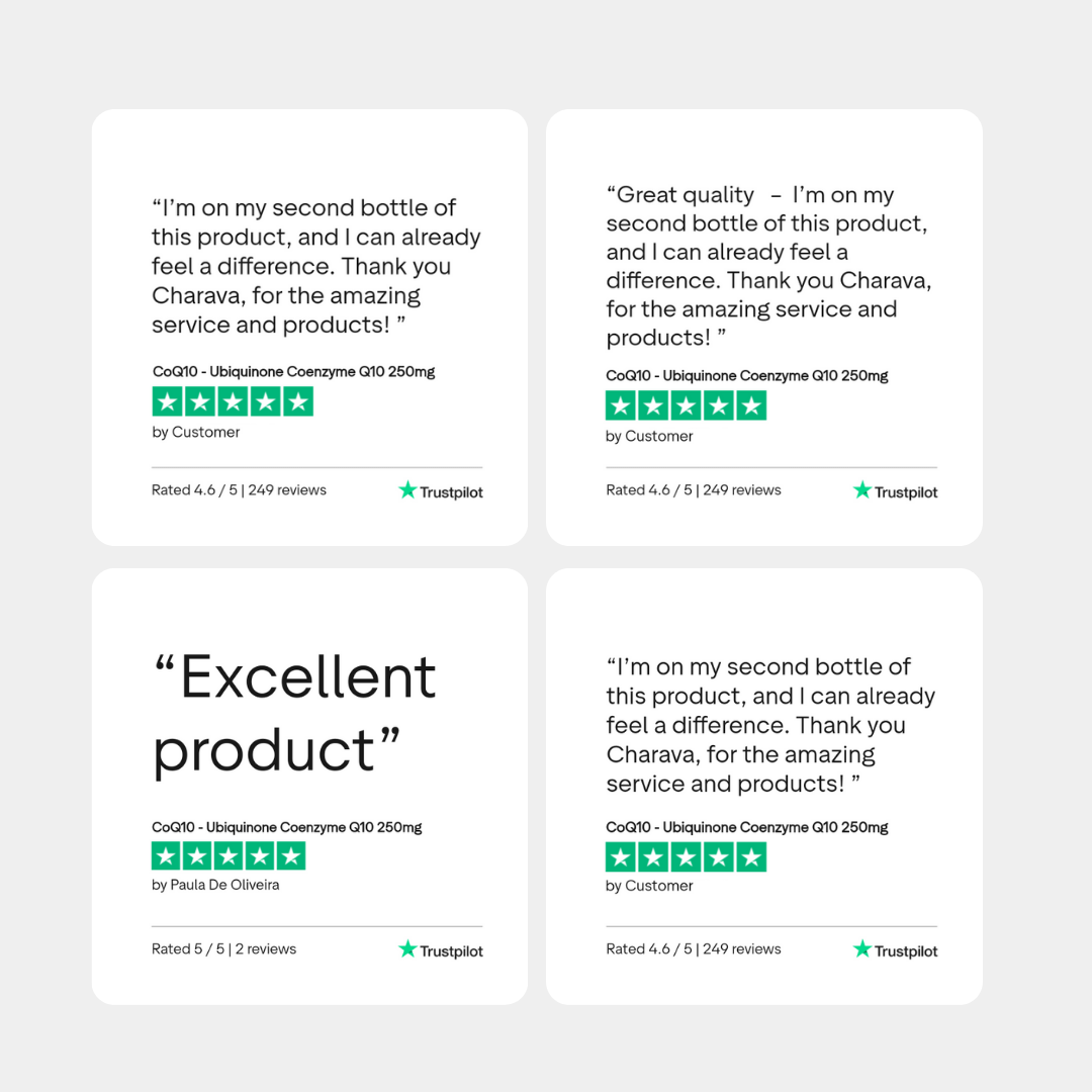 Vegan Our capsules are 100% vegan, making Charava CoQ10 suitable for a wider range of dietary preferences.