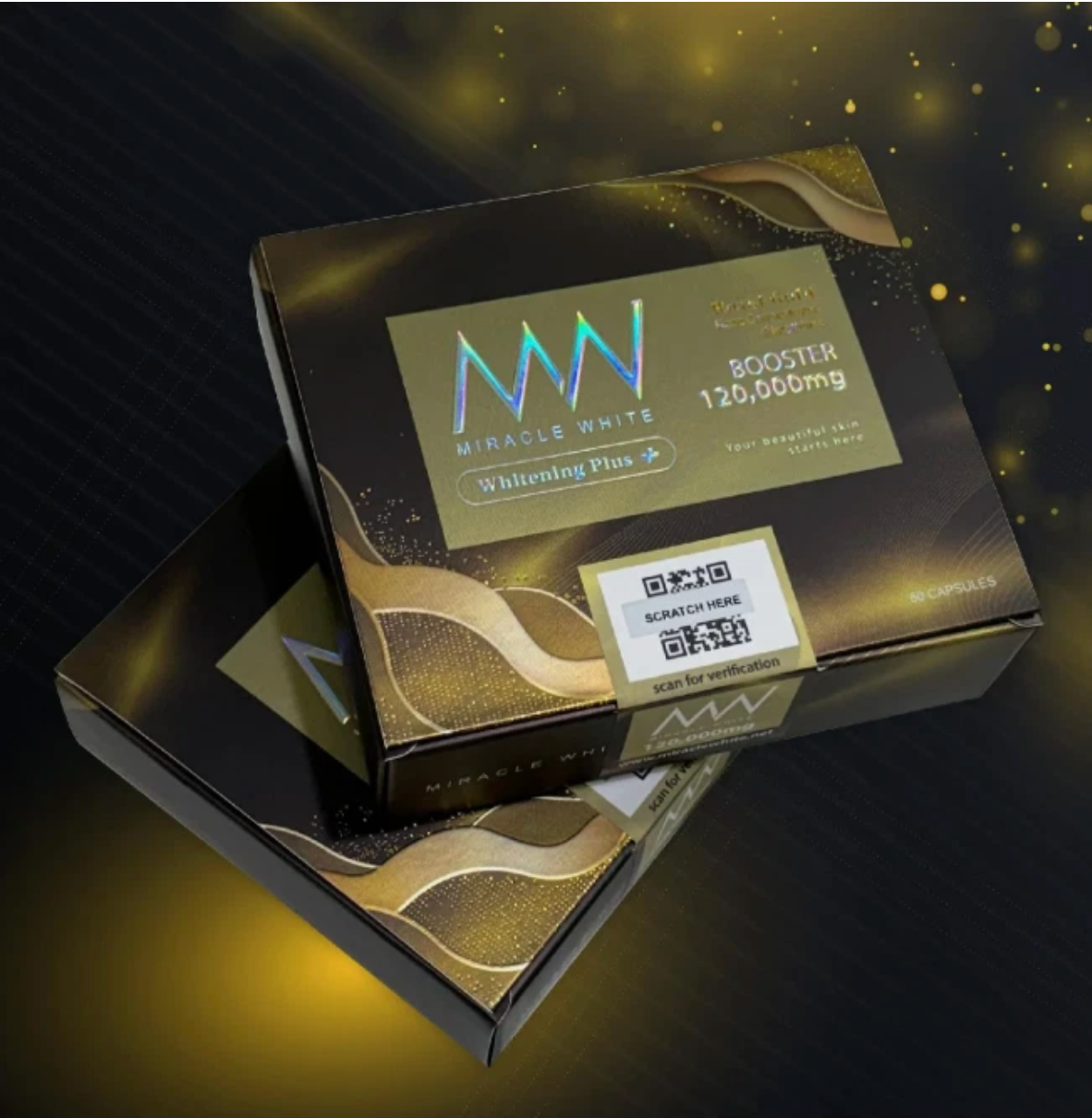 Looking to lighten, brighten, and even out your skin tone? Miracle White 120,000mg Booster Whitening Plus+ is your go-to glow capsule! This powerful formula is packed with high-dose glutathione, collagen, and potent antioxidants that work from the inside out to make your skin appear visibly fairer, lighter, and more radiant. Perfect for fading dark spots, reducing pigmentation, and boosting your natural glow. For best results, pair with Vitamin C and use consistently — your dream skin is calling!