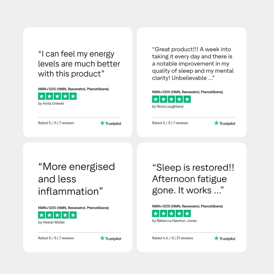 Pterostilbene, a potent antioxidant similar to resveratrol but more bioavailable, supports cognitive, metabolic, and cardiovascular health. Together, these compounds create a synergistic effect, amplifying their anti-ageing and protective properties.
